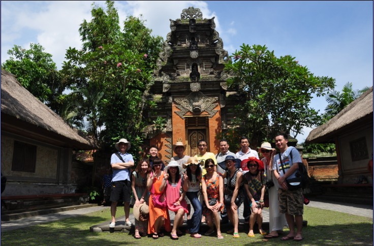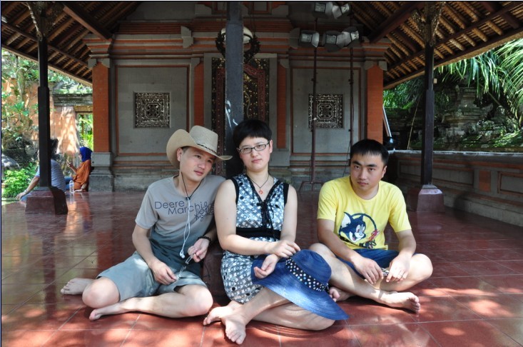 我一直向导游要求去发呆亭体验一下,但不是路边不便停车,就是已被发呆的男人占据,今天终于如愿。乌布皇宫很小很简陃,里面却有好几个大大的发呆亭,正是我体验发呆的好地方。唤上二个同事,脱鞋盘腿,依柱而坐,故作出神发呆状,然后大笑着逃离。