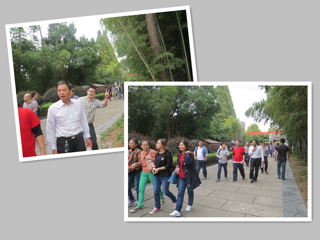 第一天,我们到达安居竹博园,欣赏了博大精深的竹文化,上千种的品种让我们惊叹不已,原来竹子也可以这么美丽这么动人,动静皆宜。我们还看到了中国特有的大熊猫,憨憨的体型,完美的肤色,让每个人都急于给大熊猫留下倩影。大家活跃在大自然中,释放了工作的压力,呼吸了绿色氧气,真正与大自然来了个亲密接触。