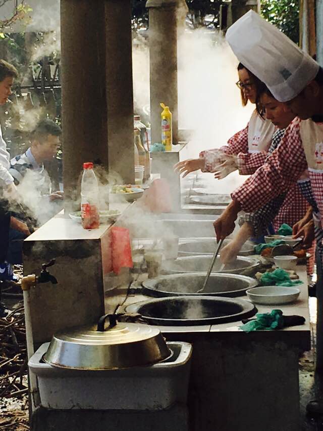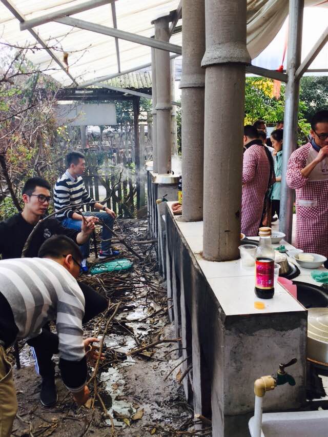土灶是第一关。以前的农村,家家都有一台土灶,劈柴生火不在话下。如今,生活在城市中的我们,既没有砍过柴也没生过火,土灶烧菜那更是头一回。抱来柴,点上火,燃起熊熊烈火的同时也冒出浓浓黑烟。再看烧火人,一个个泪眼婆娑,咳嗽不止。好不容易烧热了油锅,主厨却喊火别太旺。忙不迭把柴火退出,主厨又要旺火爆炒,真真难煞人。