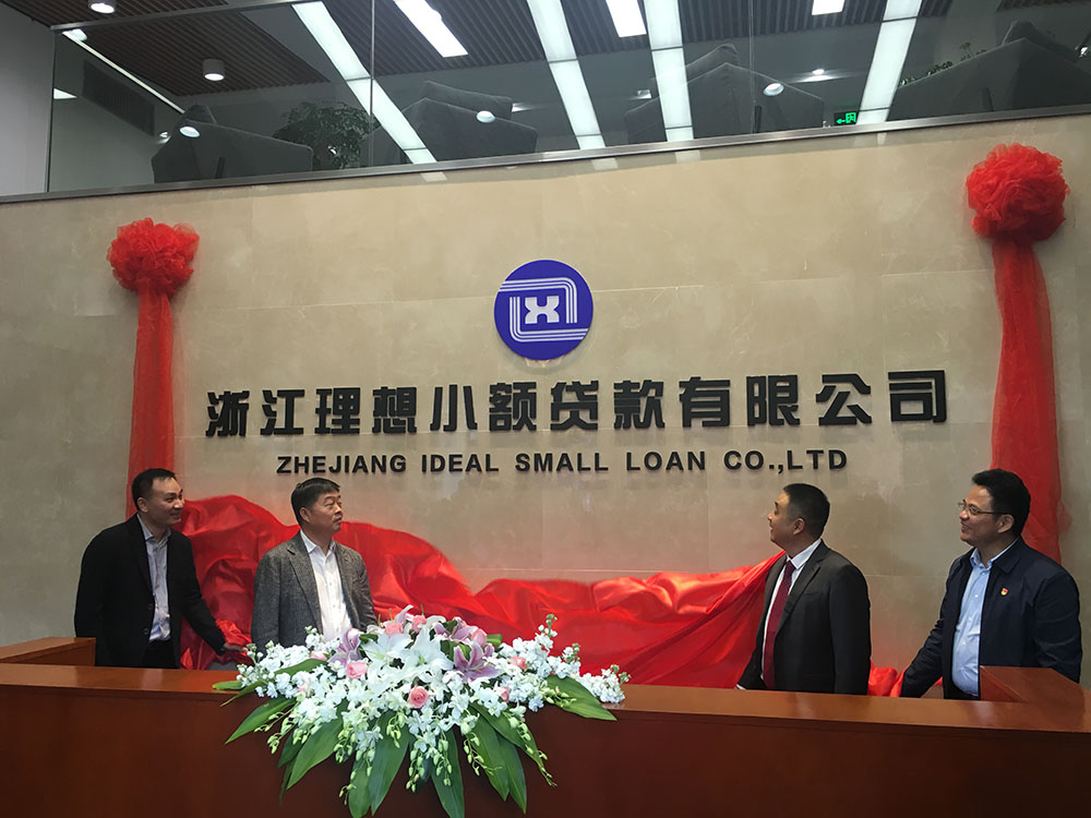 余杭区常务副区长祝振伟先生、未来科技城管委会陈夏林主任、余杭区发改局杨金水局长、余杭区慈善总会魏金阗秘书长及公司董事长陈立强为浙江理想小额贷款有限公司新址揭牌。